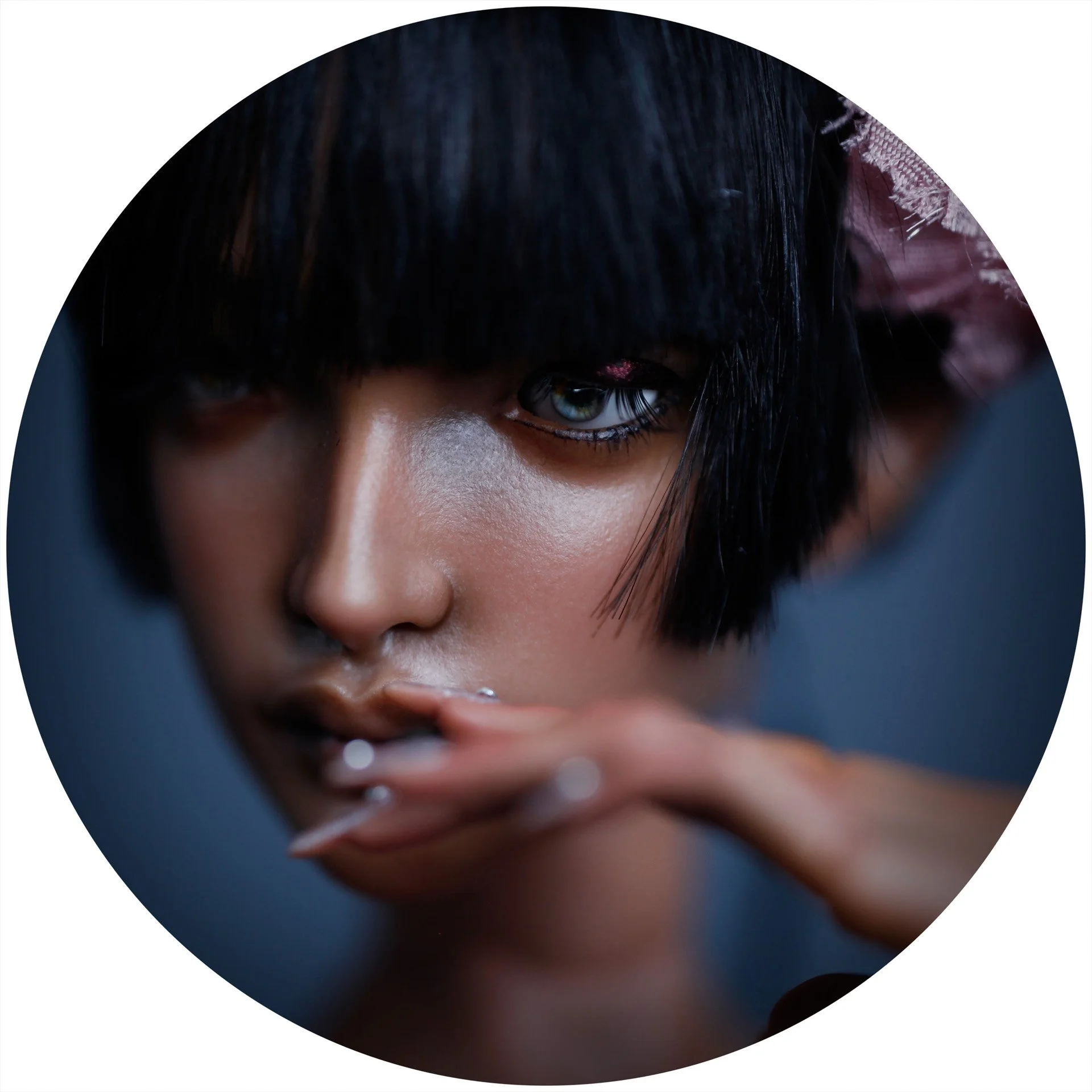 A 4th Gen, Ebony Silk, Idea sculpt with Medium Bust that comes as shown with faceup and bodyblush and features the Silk Bisque lamination technique on the face that mimics the texture of porcelain. She comes with pose A manicured hands with silver accents and pedicured feet.