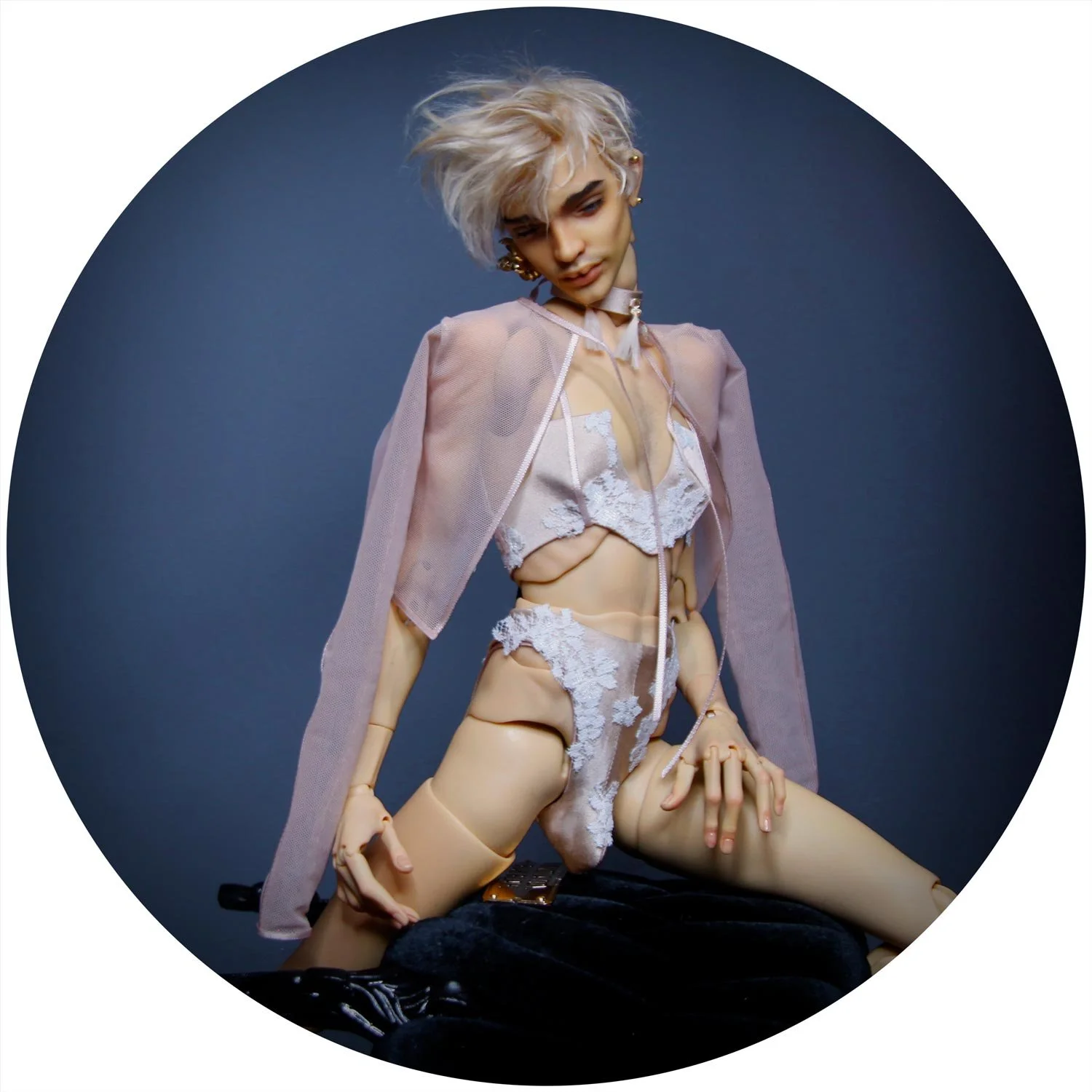 The Whiskey Smoke Shirt drapes like a secret—loose, languid, and laced with intent. Designed for XY Mini dolls, this long-sleeve piece flows in sheer pink mesh, soft as breath and light as haze. A single ribbon tie fastens at the neck, leaving the back completely open down to the hem—or, when reversed, revealing the chest and stomach in a plunging front split, with the bow resting gently at the collarbone. Matching ribbon traces the garment’s edges, offering a whisper of structure to its otherwise organic silhouette. Worn either way, the Whiskey Smoke Shirt is a soft unraveling—romantic, undone, and quietly subversive. Part of PPNY’s 2025 Basics Collection.