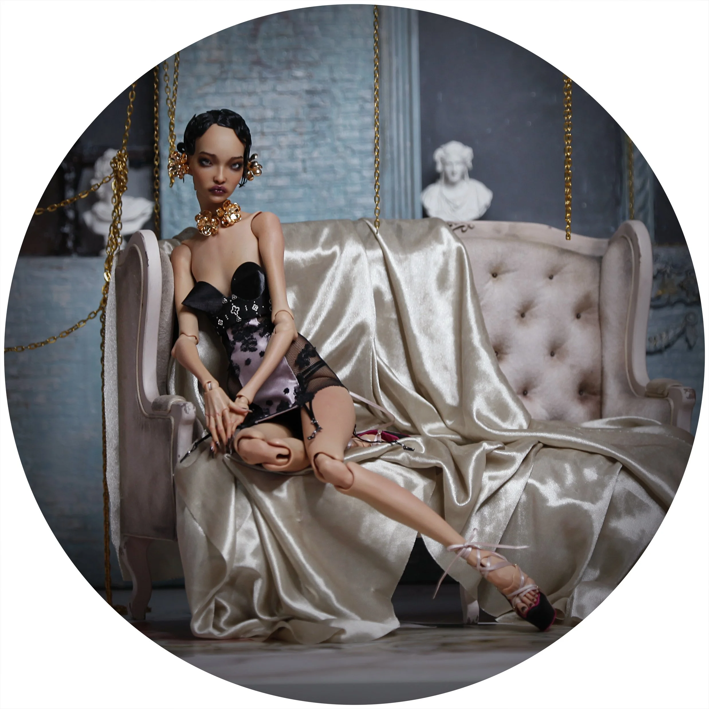 Also featured here: New Moon Wig, Waves of Rapture Heel, Decorum and Desire Garter Skirt, Decorum and Desire Bullet Bra, Golden Hour Necklace, Golden Hour Earrings